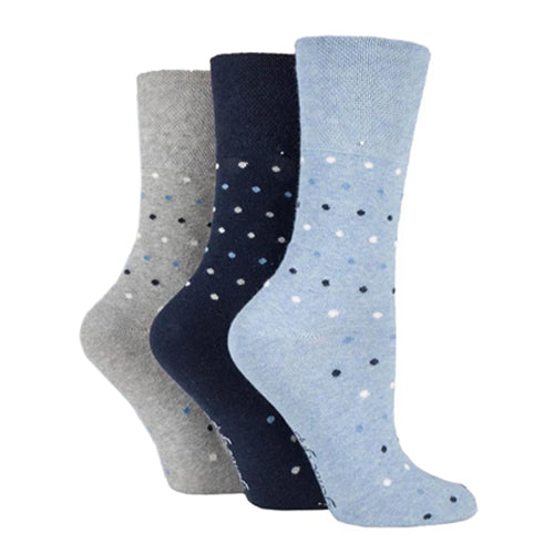 3 Pairs Ladies Digital Dots Cotton Socks - Navy/Denim
