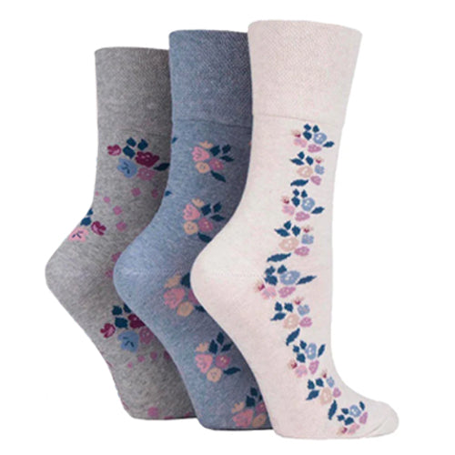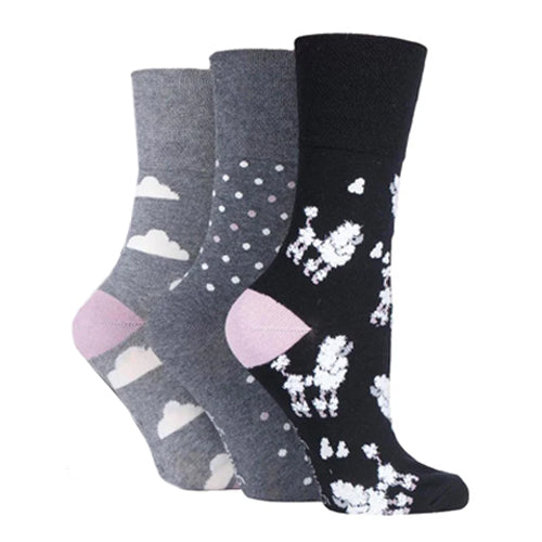 3 Pairs Ladies Fun Feet Cotton Socks - Love Birds Grey/Blue