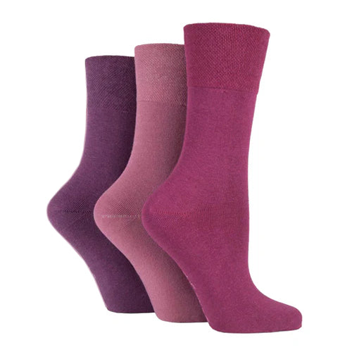 3 Pairs Ladies Heel & Toe Cotton Socks - Black and Mauve