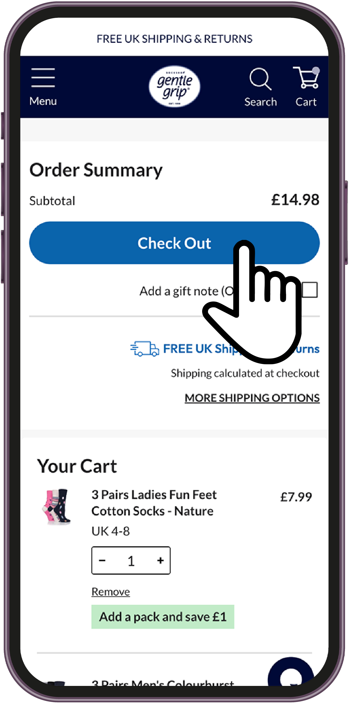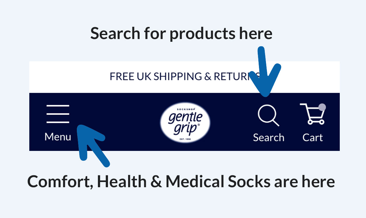 It’s quick and easy to find and order the perfect socks! Select between comfort socks, or health and medical socks in our menu, or if you know what you’re looking for you can search for it.