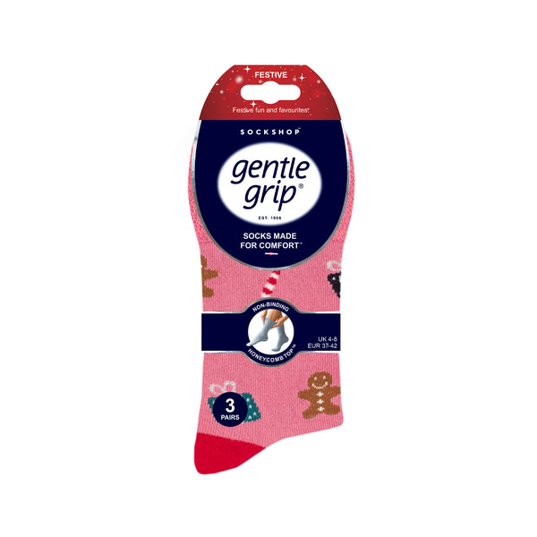 Our Ladies Gentle Grip Fun Feet Bamboo Christmas Socks in Festive designs are the number one solution for people who find regular socks tight and uncomfortable. These comfortable socks in red, pink and navy feature festive Christmas designs - perfect for that festive feeling.
