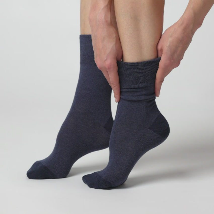Our Ladies Gentle Grip Seclude Contrast Heel & Toe Cotton Socks in Navy/Denim design are the number one solution for people who find regular socks tight and uncomfortable.