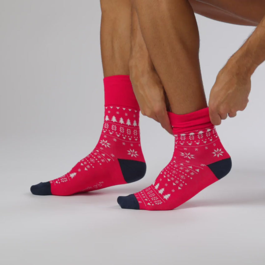 Our Men's Gentle Grip Fun Feet Christmas Cotton Socks in Fairisle design are the number one solution for people who find regular socks tight and uncomfortable. These comfortable socks feature holly, santa, Christmas tree and present design - perfect for that festive feeling.